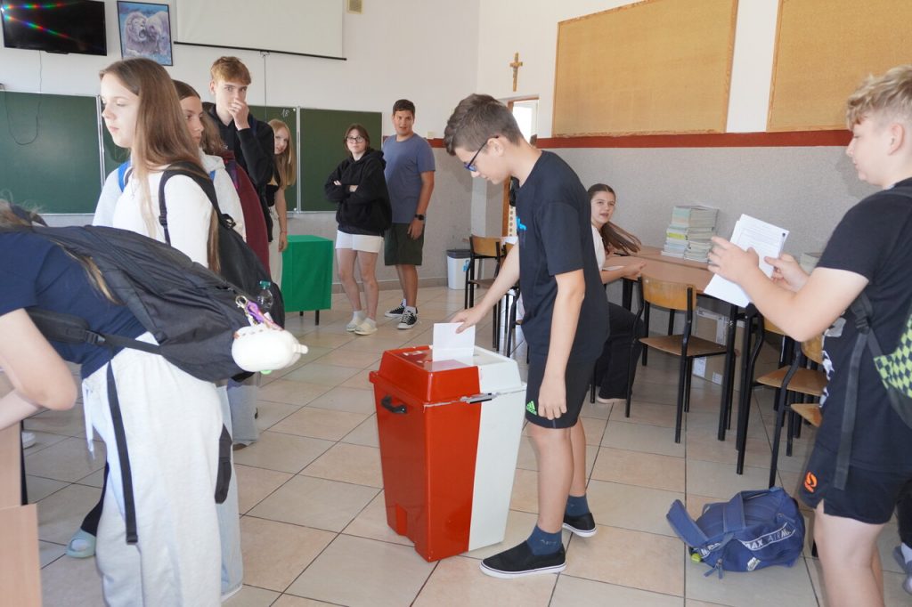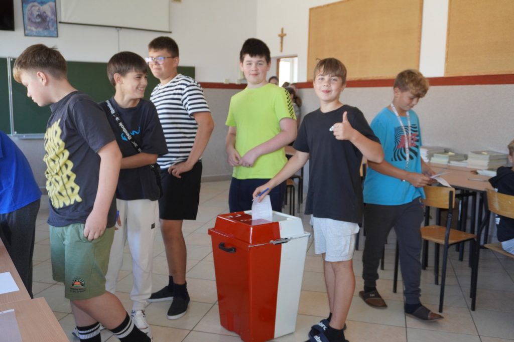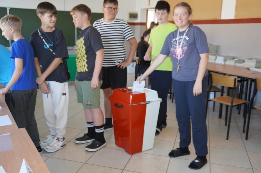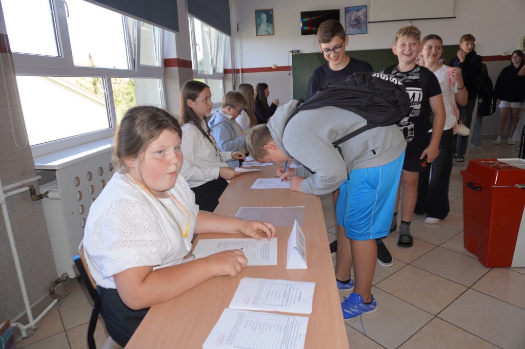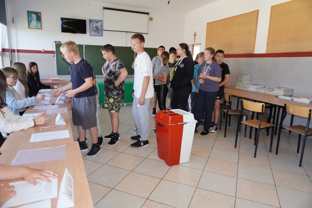 18 września 2025 r. odbyły się w naszej szkole wybory Zarządu Samorządu Uczniowskiego. O wejście do Zarządu walczyło 5 kandydatów. Spośród 86 głosów najwięcej otrzymała MARTYNA SIENICKA z kl. VII, która objęła funkcję przewodniczącej.