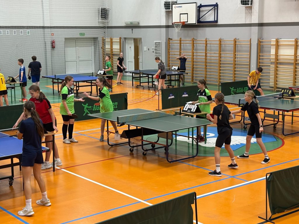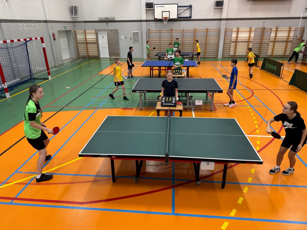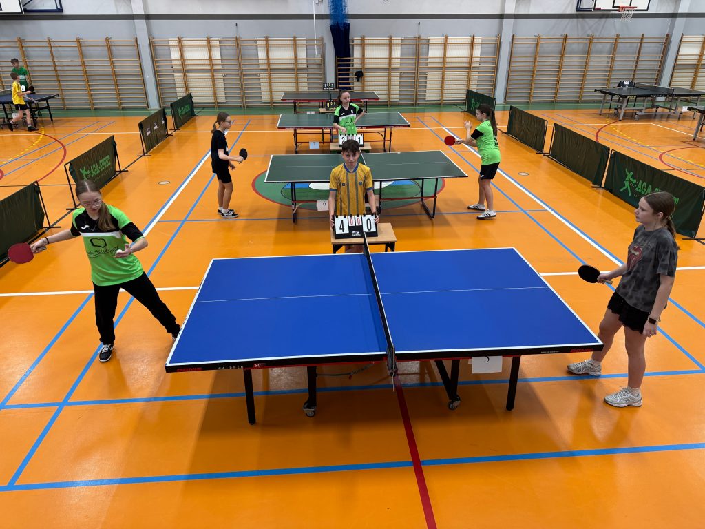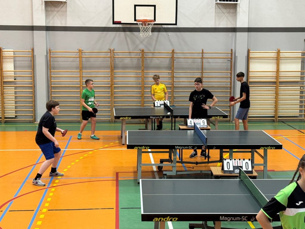 14 listopada 2025 roku w Wysokiem Mazowieckiem nasi uczniowie uczestniczyli w Powiatowych Igrzyskach Dzieci oraz Igrzyskach Młodzieży Szkolnej w Drużynowym Tenisie Stołowym dziewcząt i chłopców.