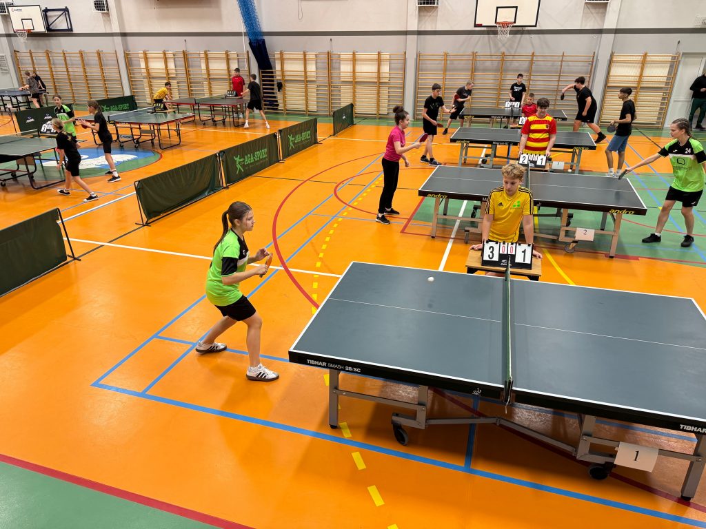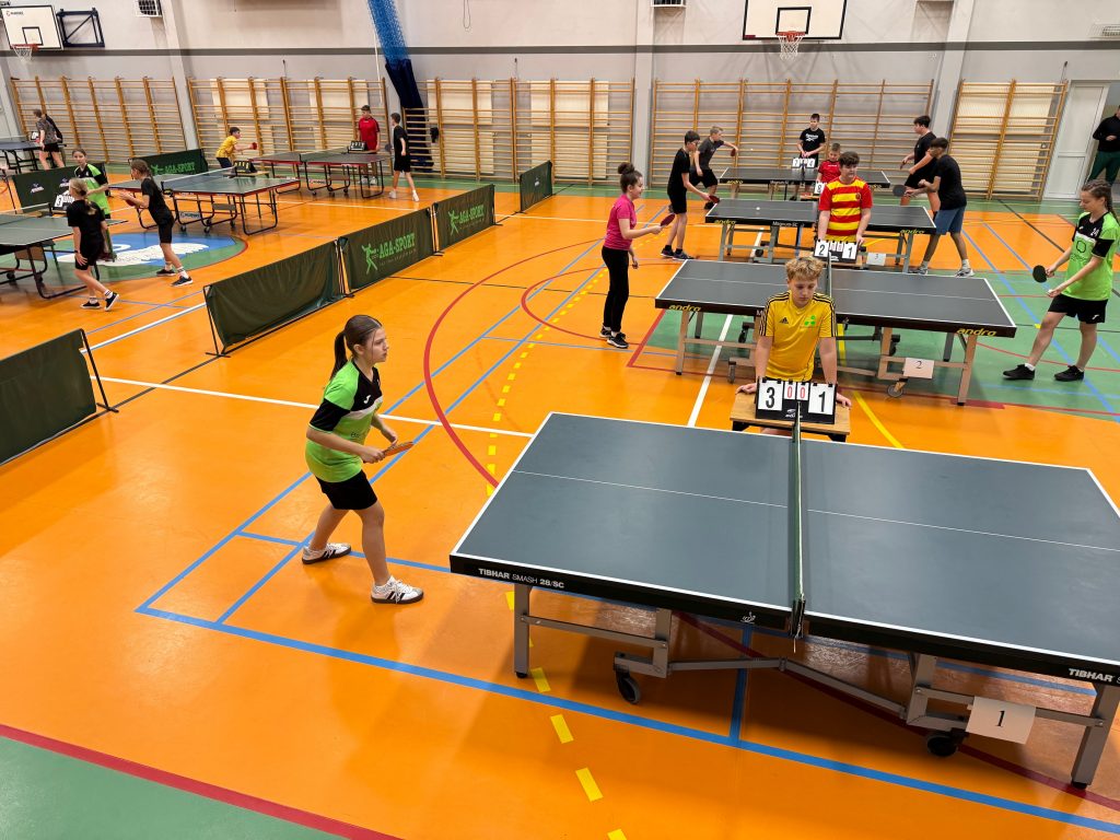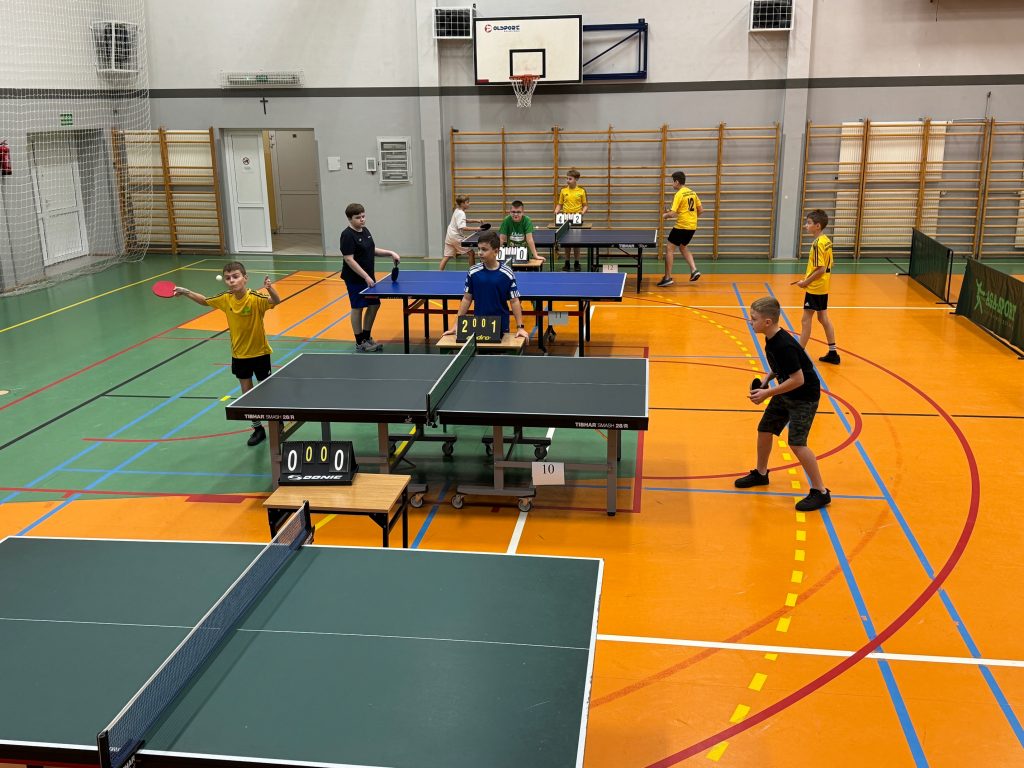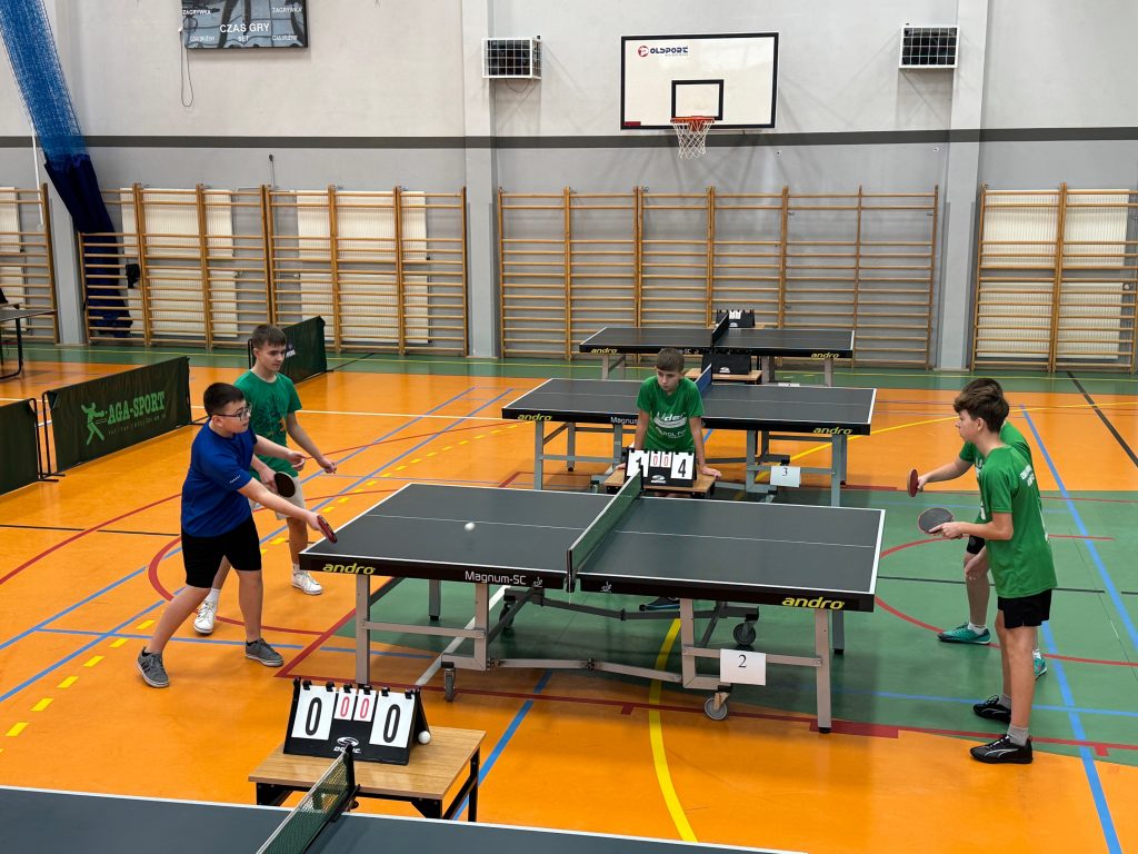 14 listopada 2025 roku w Wysokiem Mazowieckiem nasi uczniowie uczestniczyli w Powiatowych Igrzyskach Dzieci oraz Igrzyskach Młodzieży Szkolnej w Drużynowym Tenisie Stołowym dziewcząt i chłopców.